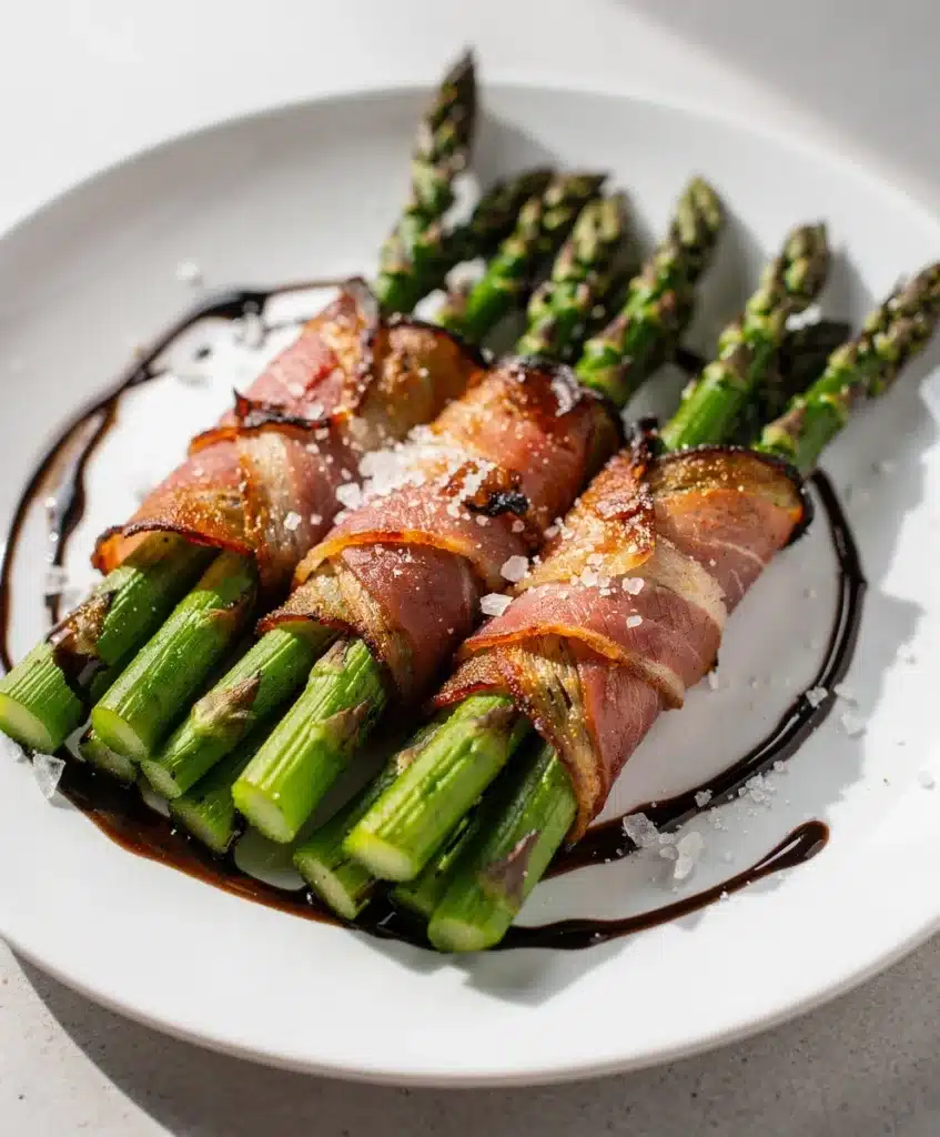 Elegant, savory bundles of fresh asparagus wrapped in salty prosciutto and roasted with a sweet and tangy glaze. This simple yet impressive side dish or appetizer comes together in under 30 minutes, perfect for weeknights or special gatherings.