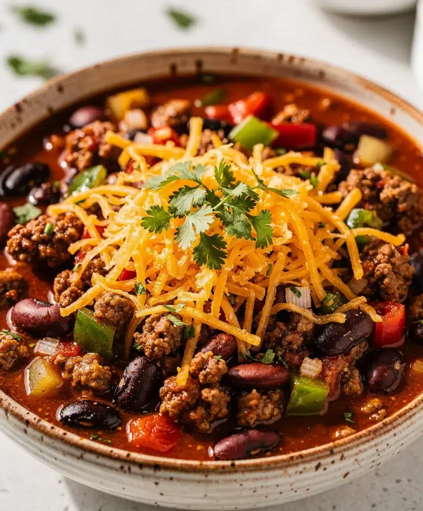 For deeper flavor, simmer for 45 minutes to 1 hour. Always drain and rinse canned beans. The chili freezes well for up to 3 months. For a vegetarian version, omit beef, use an extra can of beans or lentils, and vegetable broth.