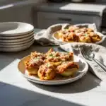 Creamy ricotta and spinach stuffed shells with Italian sausage, baked in marinara sauce for the ultimate holiday comfort food.