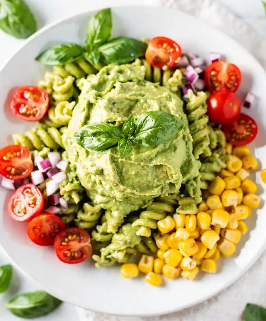 Avocado pasta pairs well with grilled chicken, shrimp, or fish. It also complements salads, sandwiches, and soups. For a vegetarian option, add grilled vegetables like zucchini, bell peppers, and corn.