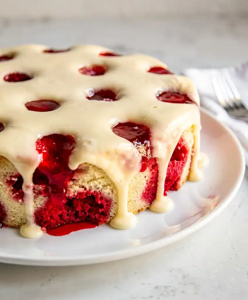 Why You’ll Love This Raspberry Jello Poke Cake with Vanilla Glaze