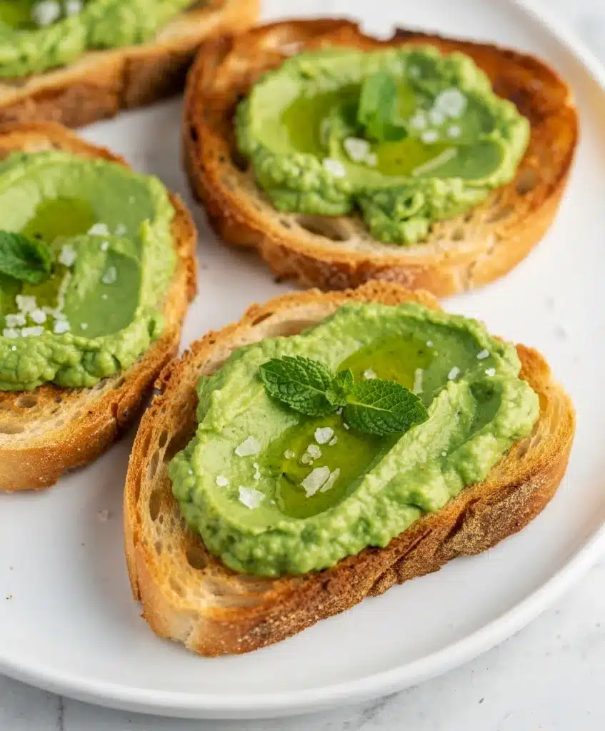 - Seasonal Twist: In the summer, add a thin slice of ripe peach or nectarine on top of the pea spread. In the fall, a sprinkle of pomegranate arils adds a gorgeous pop of color and tartness.